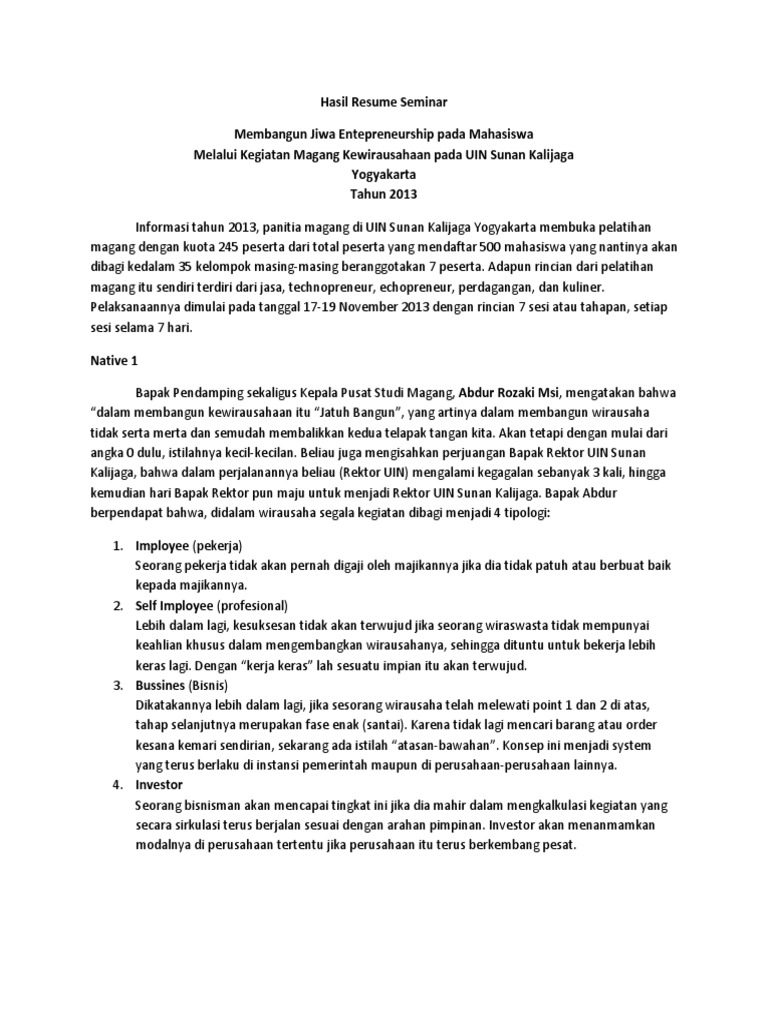 . Dengan kata lain segala sesuatu di yang luar naskah asli tidak boleh dimasukkan ke dalam resume ini. Format Laporan Kegiatan Seminar mengadakan seminar 1. Simple To Use No Registration or CC Required.